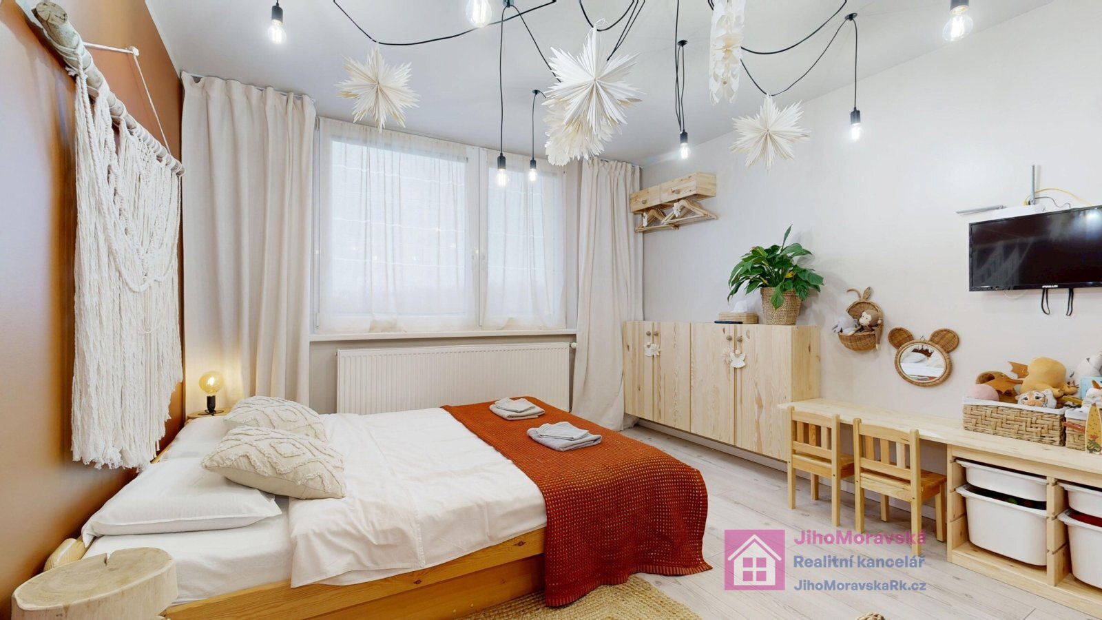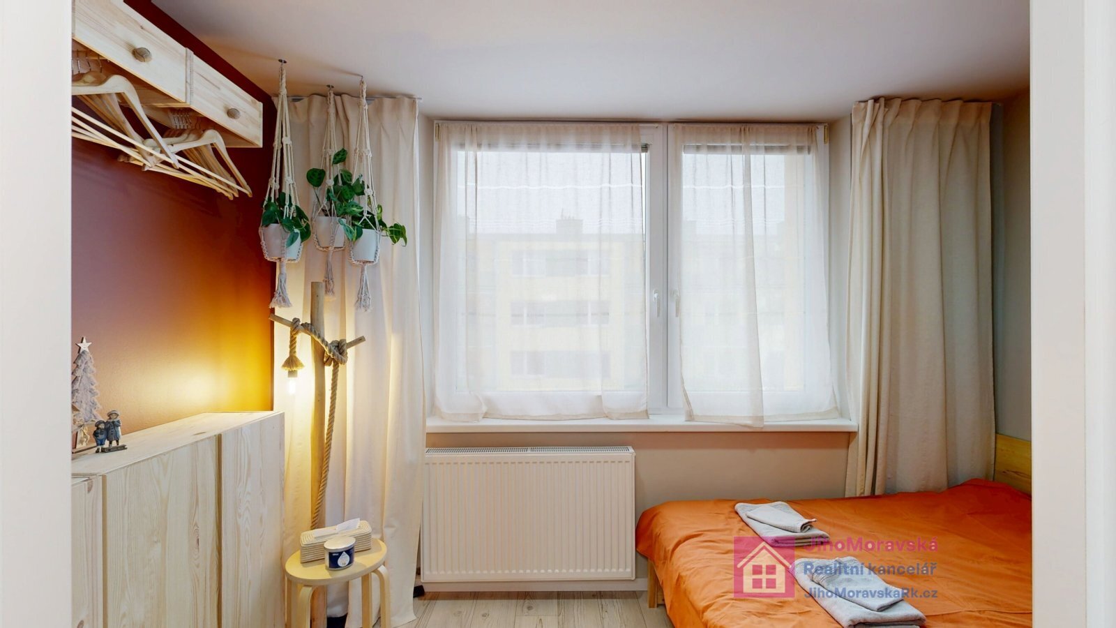 ložnice, pokoj, pokoj s přístupem do lodžie, který má výhed do nově budovaného parku.