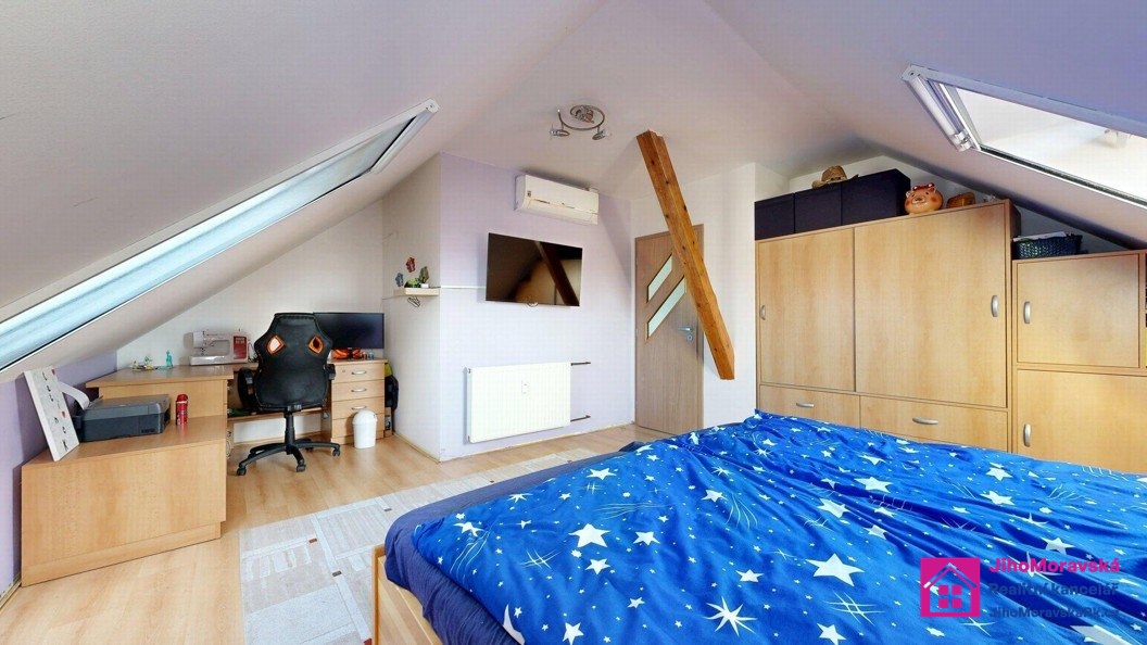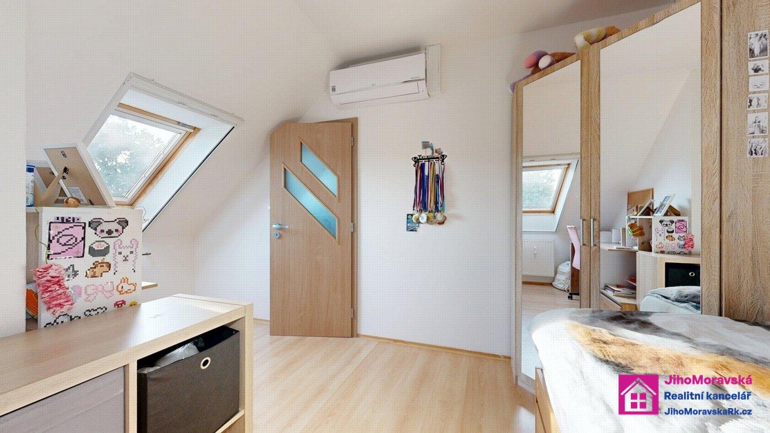 Ve výhradním zastoupení majitelů, Vám zprostředkujeme koupi bytové jednotky o velikosti 4+kk v ulici Hájová č.p. 820, městská část Poštorná, Břeclav. Byt se nachází v 3.nadzemním podlaží a podkroví z celkového počtu 3 podlaží.