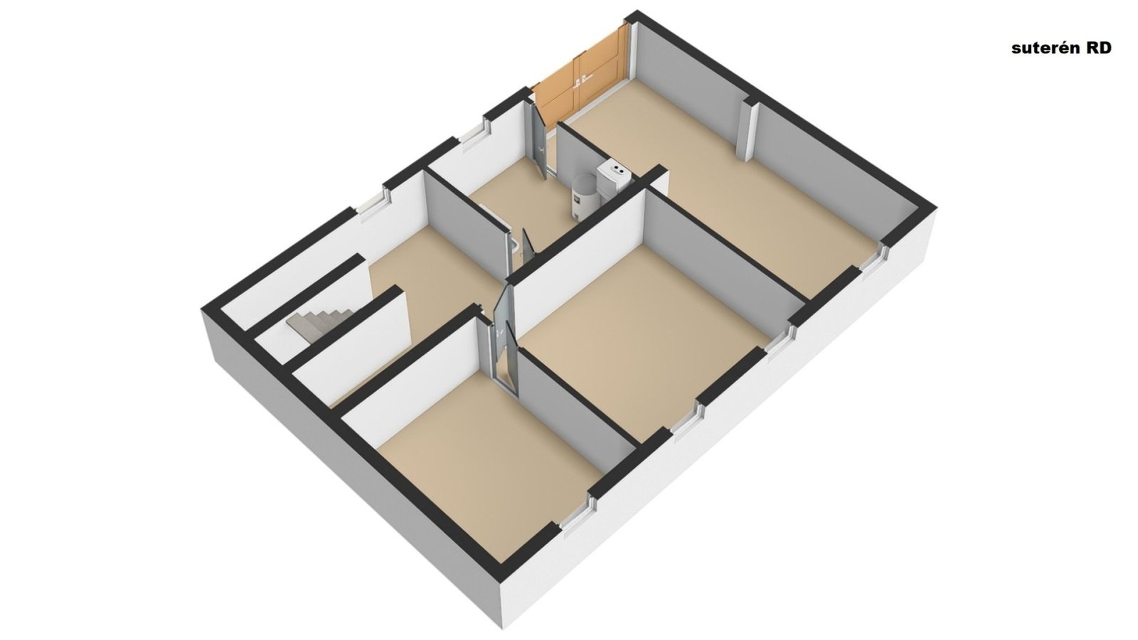 suterén: dílna, technická místnost, prádelna, společenská místnost, sklad a schodiště.