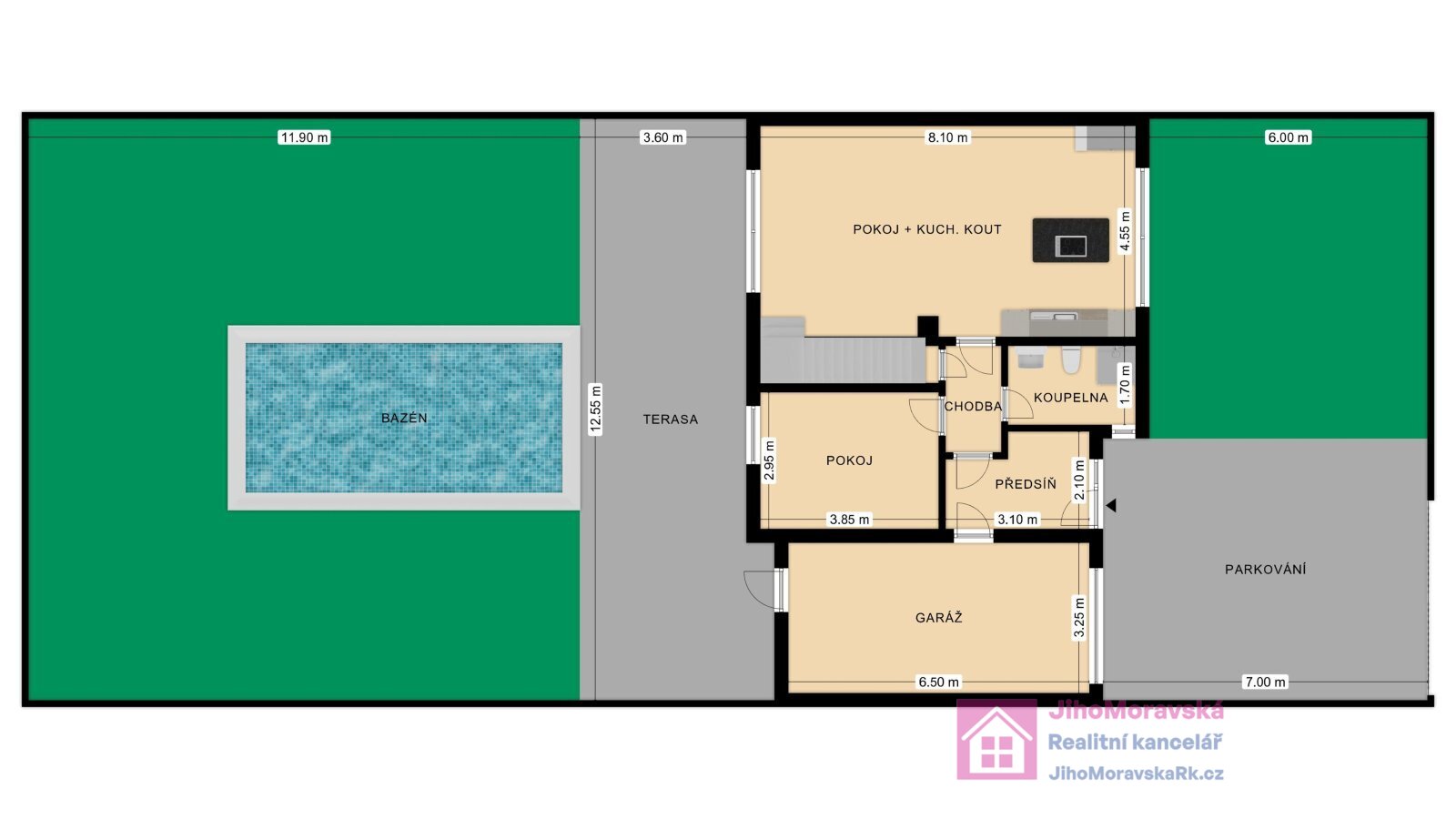 Půdorys domu včetně předzahrádky a zahrady naleznete ve fotogalerii.