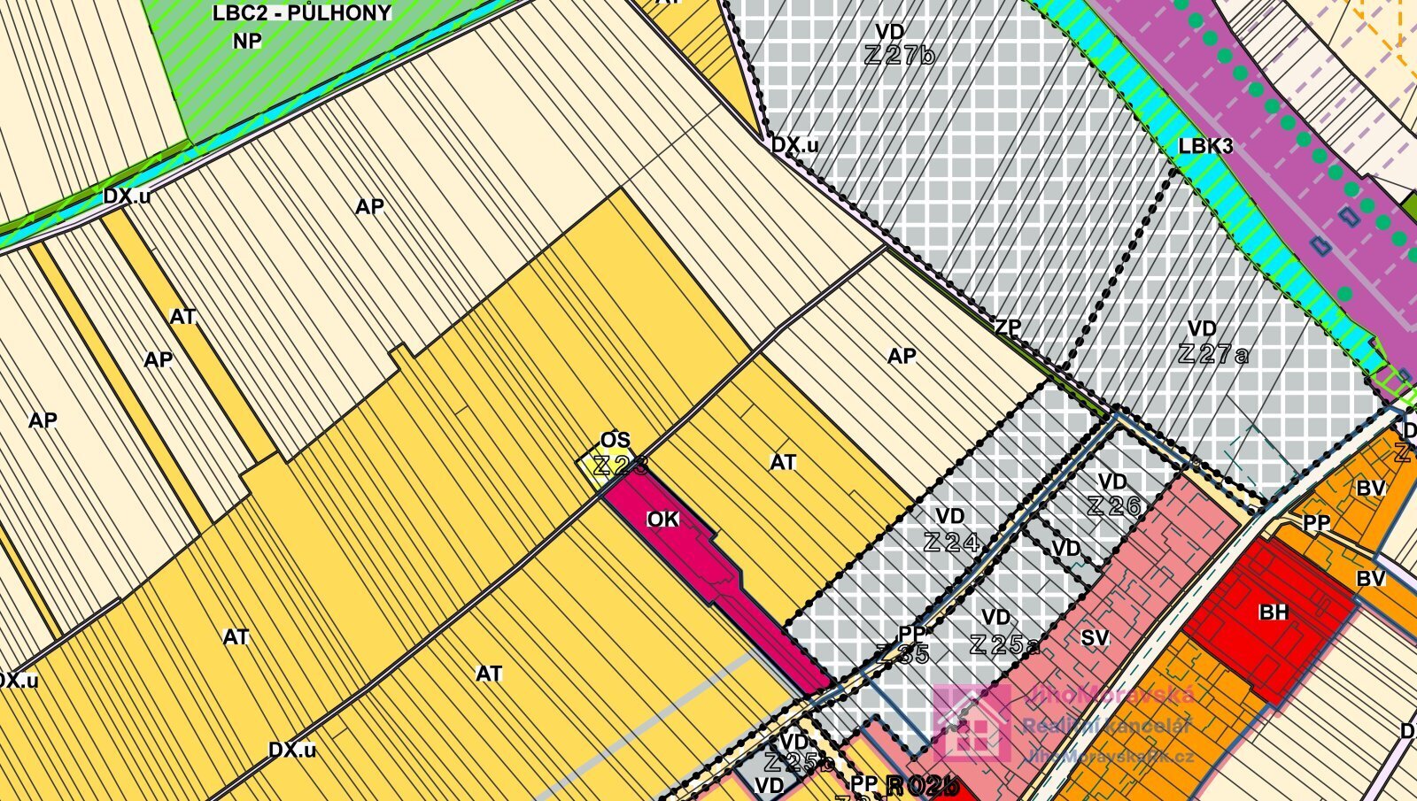 Konkrétně se jedná o parcely č. 1401/271, 1401/357 a 1401/434 v katastrálním území Rakvice. Dle územního plánu spadají do plochy AP - pole, AT - trvalé kultury a VD - výroba drobná (viz. fotogalerie).